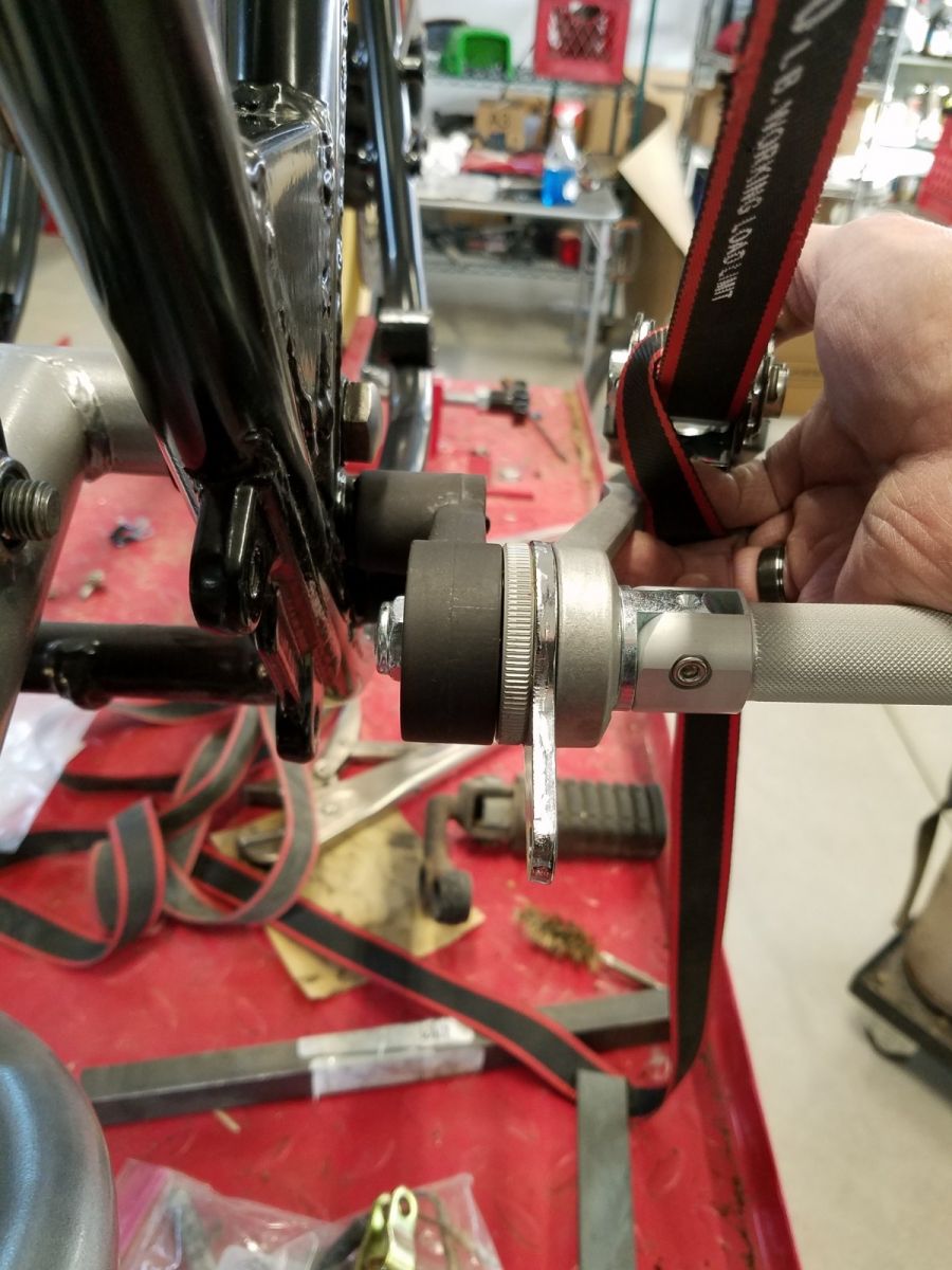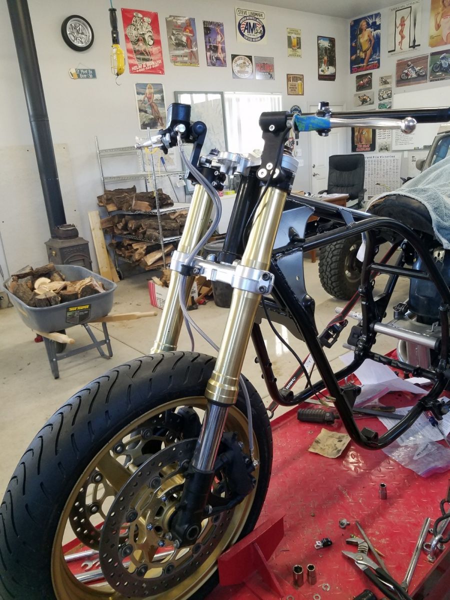 Hindsight always being 20/20, it would have been easier to weld tabs to the frame PRIOR to powder coat, but I did not know I would be using another MC at the time. So I will need to engineer a mount that bolts on to the existing holes.