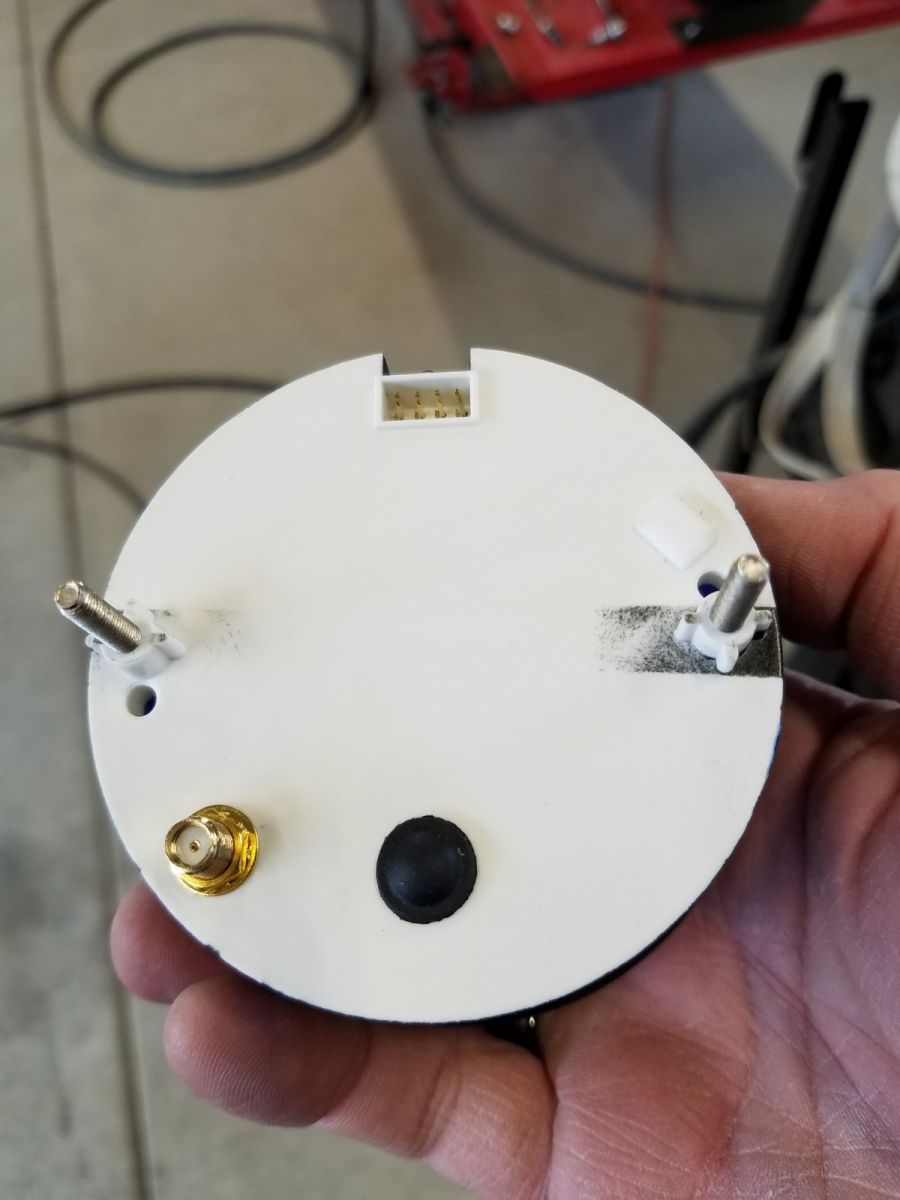 While the petcock is soaking (or desolving!) in the carburetor dip, I thought I would post up my mounting solution for my gps speedo. I am using the stock gage mounting bracket since I am retaining the oem tach. The speedo was advertised as a motorcycle or car application. Unfortunately it came as a panel mount. I didn't want to fab a new bezel or panel for it since I would never get it looking decent. Here is the back of the new gage.