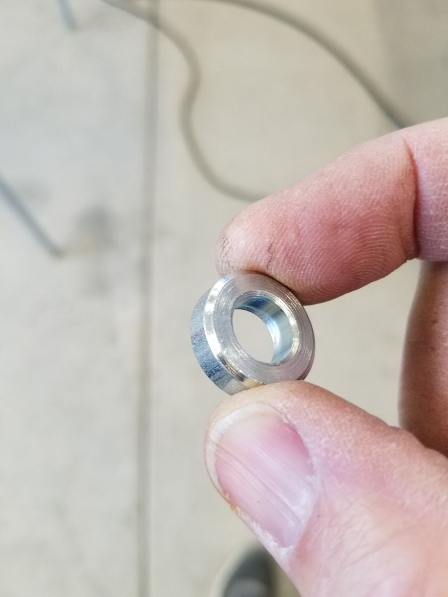 The speedo had a slightly shorter spacing on the mounting studs than the stock set up. And a much smaller diameter thread. This spacer set up allowed the gage to sit flush on top of the plastic stand offs. The centerline doesn't match, but it maximizes the area of contact.
