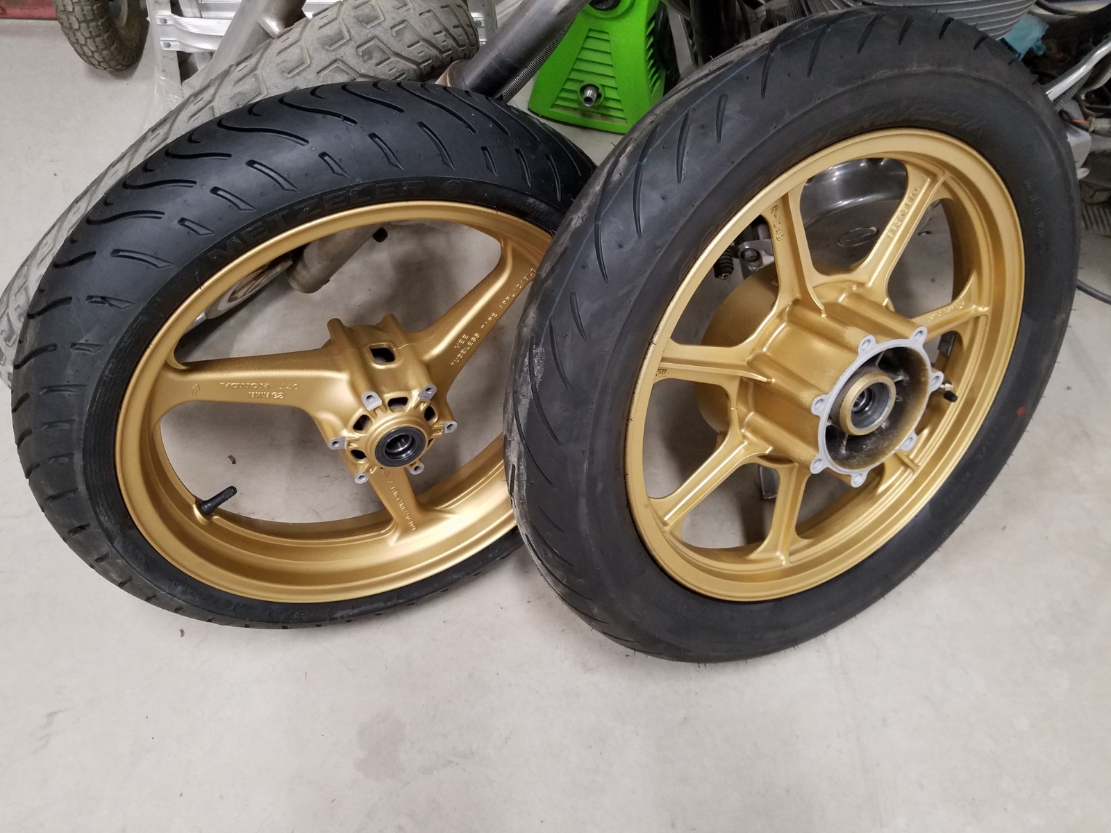 I want to use a "superbike" style handlebar, but the CBR600-RR front end uses a clip on style handlebar set up. I decided on Woodcraft riser clip ons, with a 3" rise. They arrived today, and I think these will give a better control position that the stock Honda clip ons (I didn't get the bars with the front end).