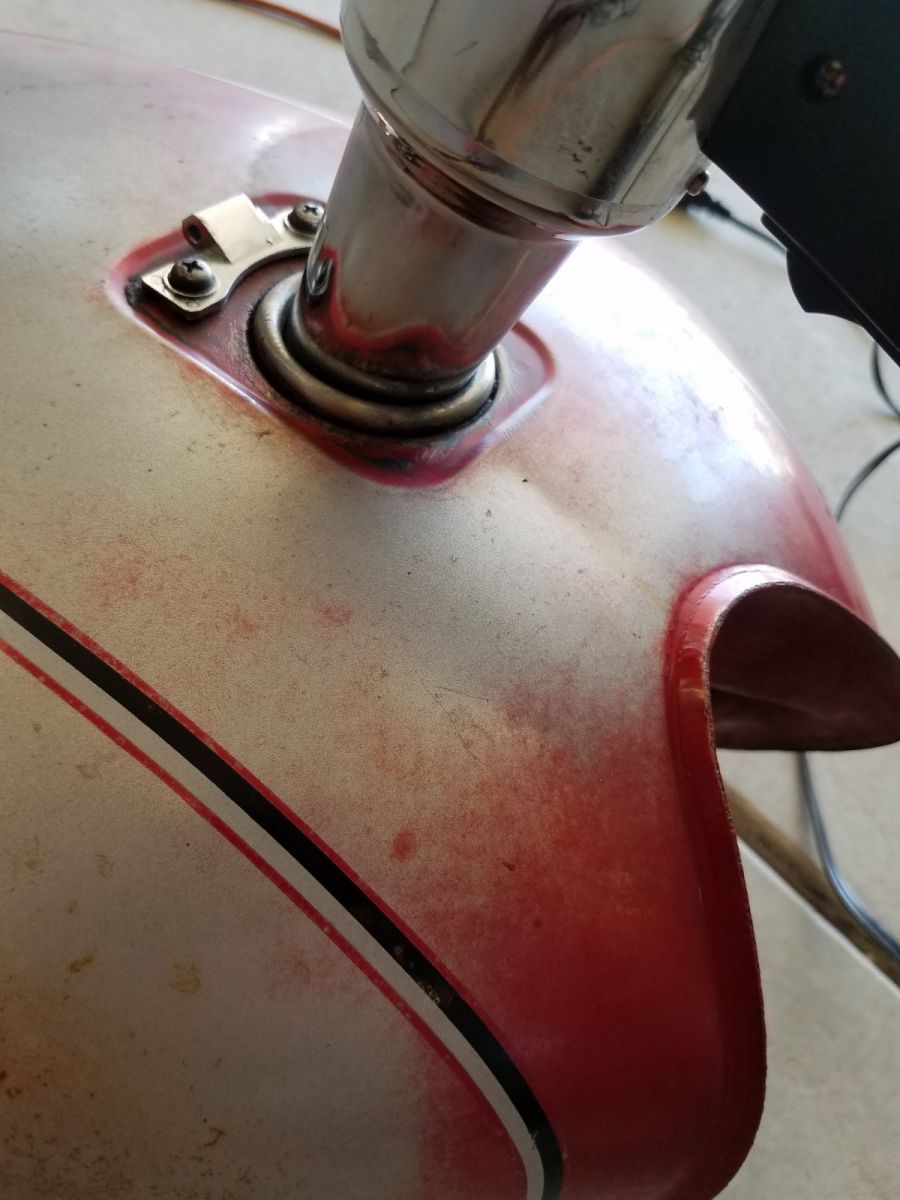 I pulled the heat gun, and the entire inside surface of the tank is now orange with flash rust. I was hoping drying the water rinse with heat right away would be okay. I didn't rinse with WD40 since I haven't confirmed it would be okay with the paint process and not bleed out ruining the paint. One fix leads to another repair process. Can't seem to catch a break today.