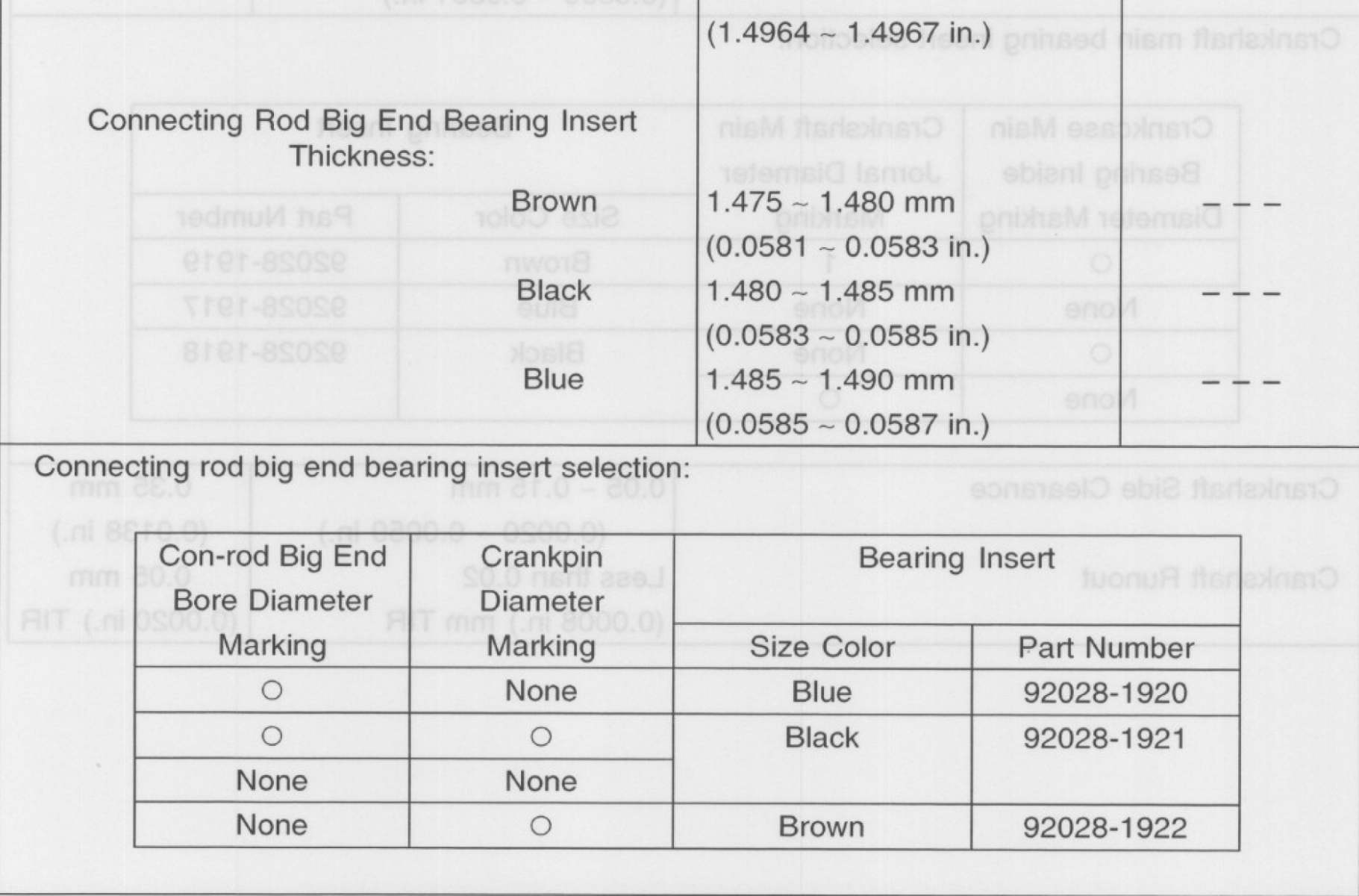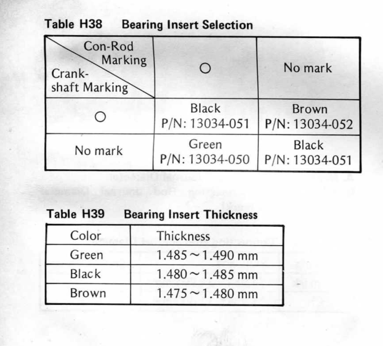 I also had issues finding enough black rod bearing shells, so I found that Kawasaki changed the material content for the zr-7 rod bearings and gave them new part numbers and changed one of the color codes. I am currently using zr-7 Black connecting rod bearings (part # 92028-1921) in my kz750e motor and they are a direct replacement.
