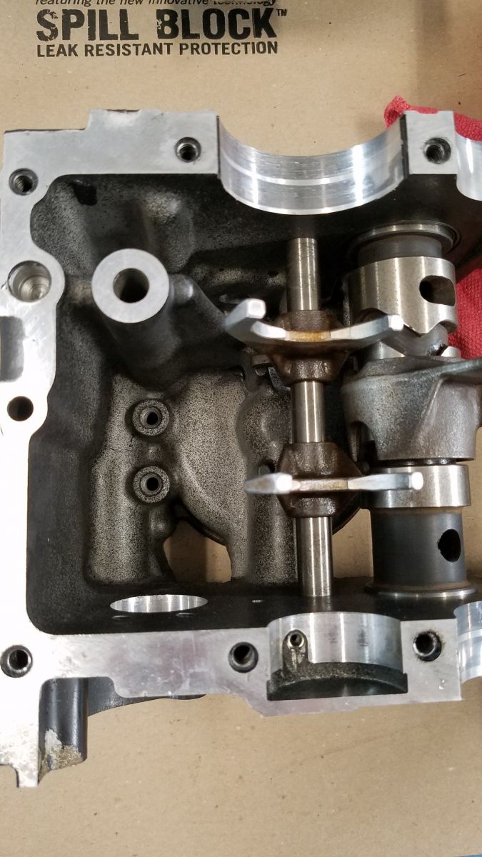 Starting the assembly process. I found some threaded holes behind the transmission on the lower case half. I can't find any clear pictures of that area during disassembly (thought I took enough). I have scoured the shop manual, and no clear pictures or mention of what they are for that I can tell. Any ideas from you KZ750 guys? Maybe I am over thinking it? You see them to the left of the shift fork shaft in the floor of the case, next to the oil filter.
