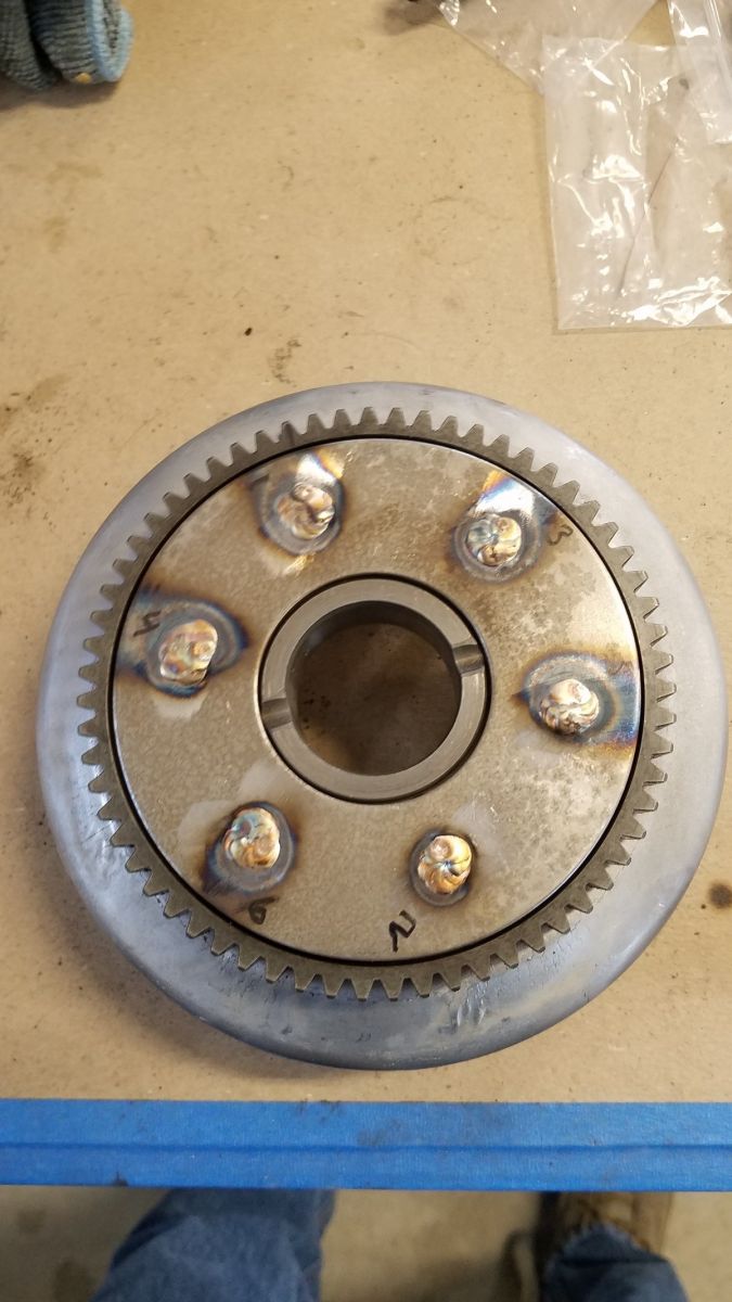 I finally got my clutch hub back from TIG welding. Silicon bronze filler rod. The amount of play with the new dampers hasn't changed, so they survived the thermal cycles.