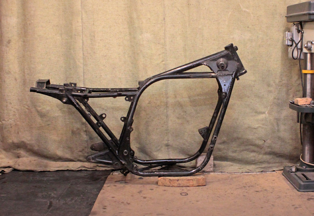 Then in the very end of 2015 we started to work on two projects: Kawasaki KZ650 and Honda CB750 Seven Fifty. KZ frame in cellar had no title and moreover, front lower engine mounts were cut from it to push Suzuki engine and some junk side stand mount was welded instead of original mount, not counting other modifications.