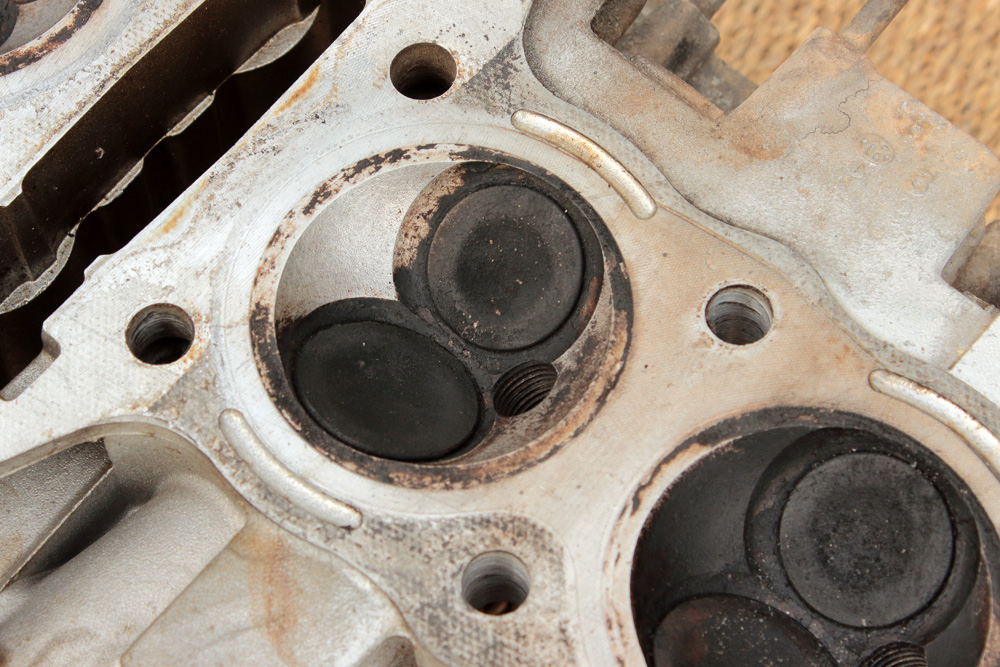 Initially I thought to use original KZ650 cylinder head as it was in very nice condition: no broken cooling fins, clean intake channels and so on and so forth. The only thing I had to fix was one of exhaust studs that was torn out with a small piece of cylinder head as well.