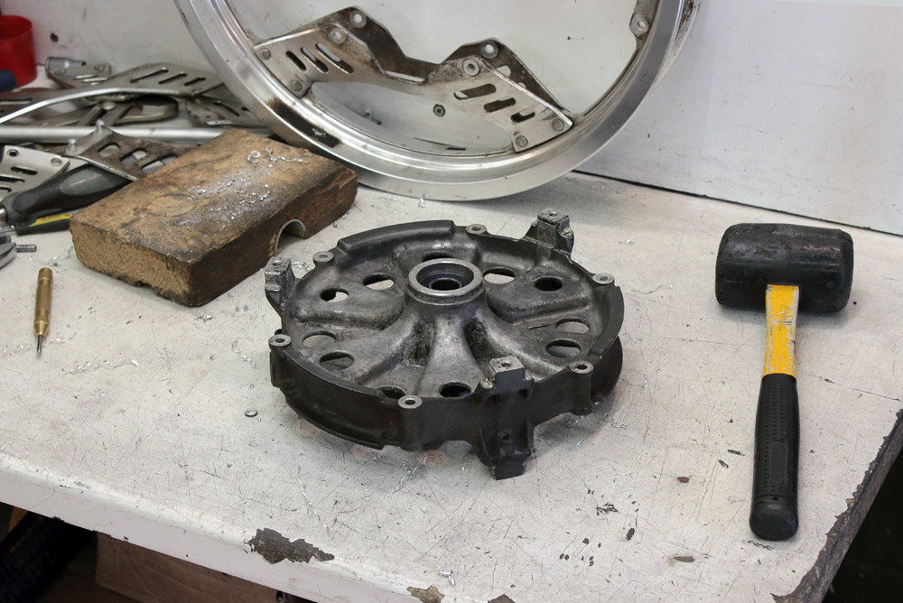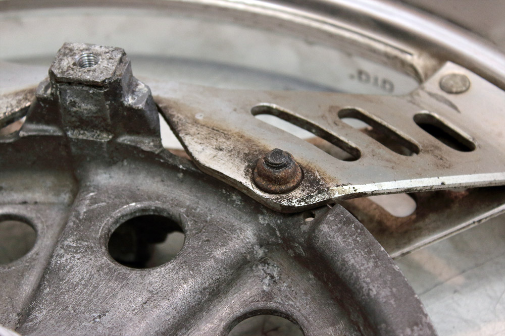 What I really don’t like in CBX550 wheel is brake boards’ asymmetry. As you may see on photo below, right and left boards have quite different configuration because left board was mounted to fork anti dive drive.