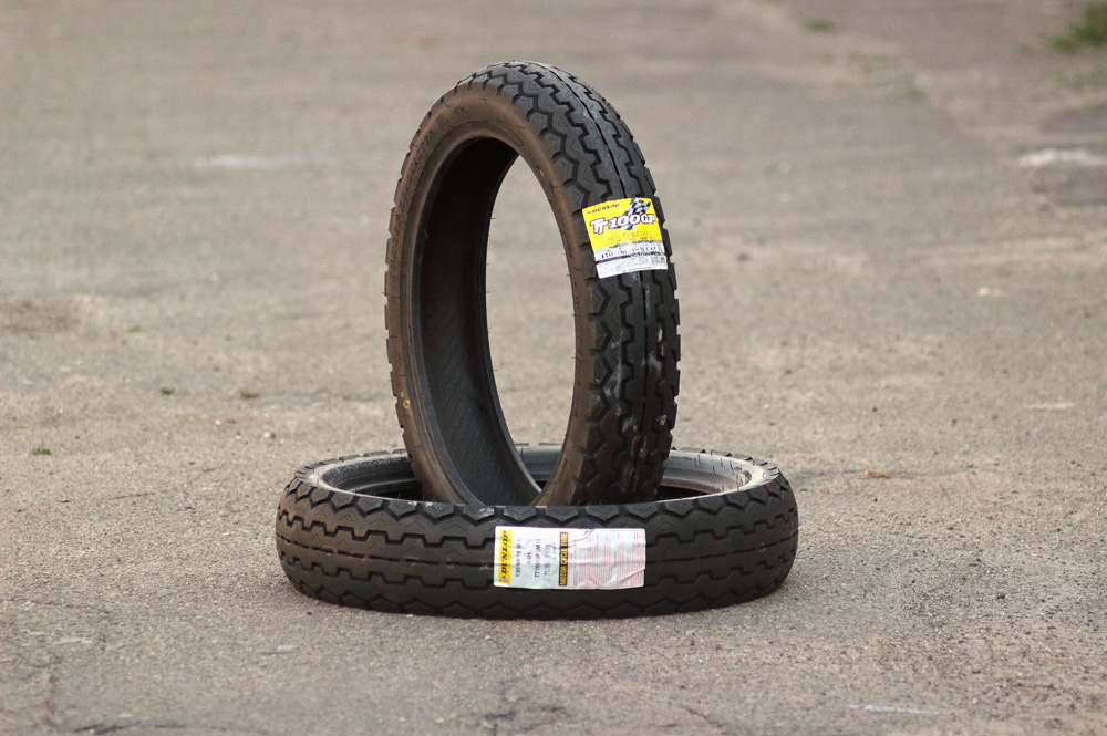 Dunlop manufacture modern version of legendary TT100 in two version: ordinary TT100 and TT100GP with improved tire compound for better grip. As it’s written about GP version on website of Dunlop: