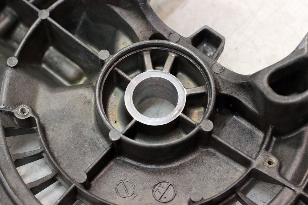 As you may see the walls of old axle shaft became too thin, thus reinforcing spacers had to be made.