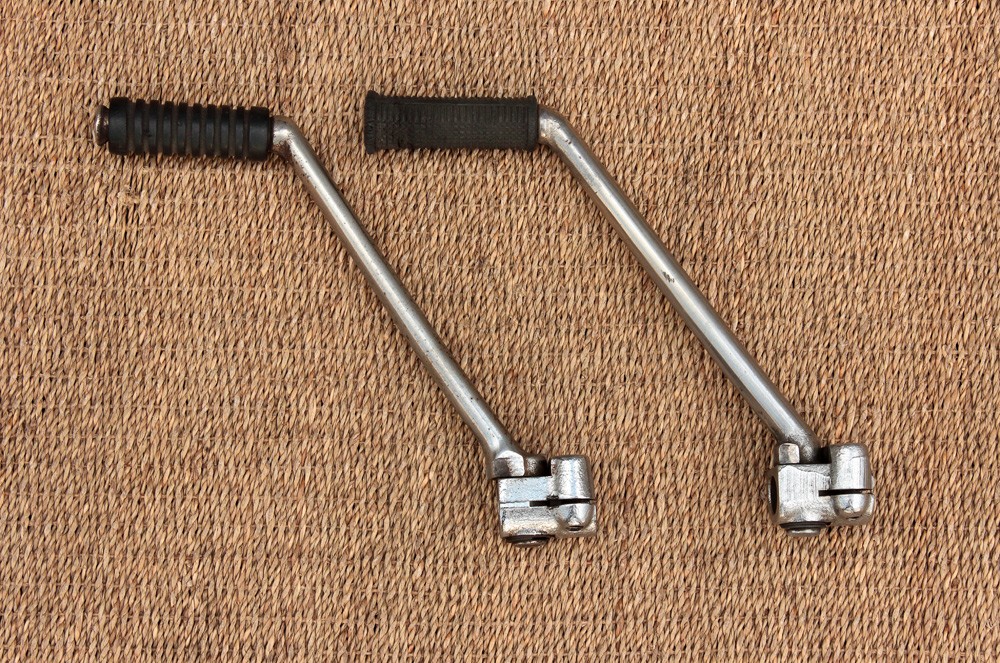 I’ve met opinion that older and newer kick pedals are of different configurations due to different mount of rider footpegs. However it’s not so. It so happened that I have both KZ650 kick pedals in my possession. Newer type came with KZ engine and older type I found to be installed on GS750 engine that in its turn was installed in KZ650 frame…