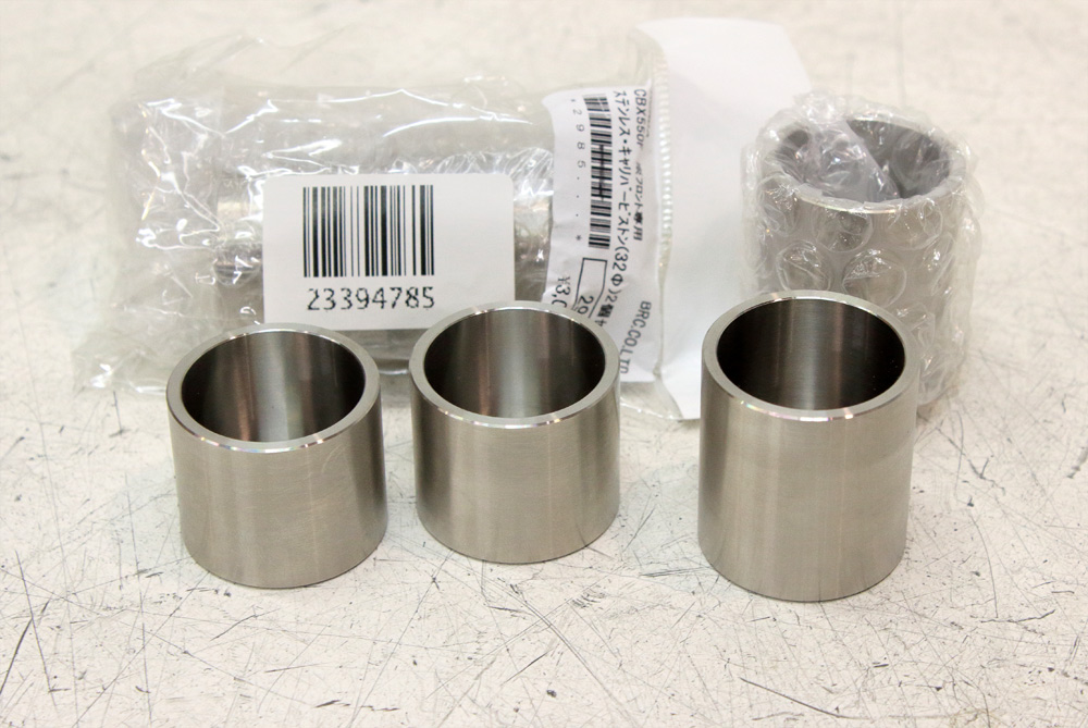 Usually I prefer to replace brake calipers with fresh, removed from the bikes with low mileage. However, in case of CBX550 calipers this exchange is impossible, as its calipers are quite specific and aren’t interchangeable with calipers from new models. This means that I have to rebuild original calipers. For this purpose I bought some parts. First of them is a set of stainless steel pistons for two front and one rear caliper.