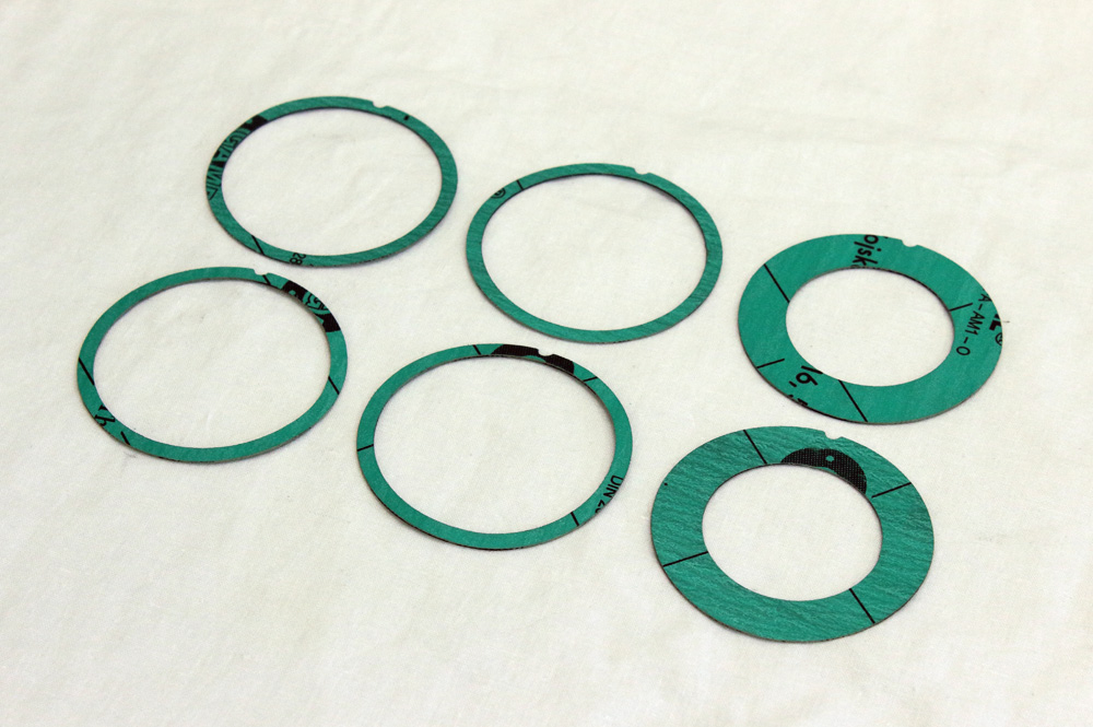 As I wrote in a previous post, KZ electrical starters are equipped with three gaskets that have no part numbers and thus couldn’t be ordered. One of them is most significant. I will explain why in the next part of the story. I measured what remains from old gaskets and places where they have to be installed. On the base of these measurements I drew blueprints for gaskets and then ordered them to be laser cut from Gambit AF-OIL gasket sheet (based on Kevlar® aramide fibres, mineral fibres, and fillers bound with NBR rubber-based binder). As I wasn’t sure about gasket thickness, I ordered two sets of different thickness.