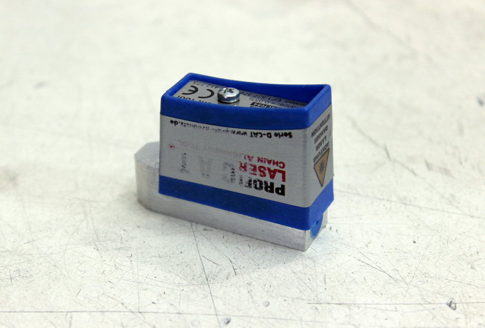 It has a flat sides and by blind chance Profi-CAT Laser beam points exactly on edge of white strip that separate halves of eraser with the edge of red point slightly on white. The thickness of white strip is 1.5mm; it makes this eraser very useful in measuring sprockets alignment as it is quite easy to observe any deviation of red laser point from “norm” on eraser.
