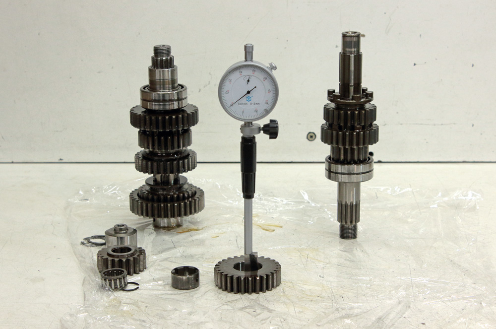 I did all measurements according to the book and in result I got confirmation that most of parts were not only in specs but in those range that book calls “standard” which means dimensions of new part. The only “out of spec” thing was copper bushing of first gear on output shaft. It’s curios, even taking into account that it’s the largest gear on the shaft of smallest diameter as it means intensive use of first gear. I could only assume that previous owner of engine was learning how to ride bike. However, looks like he didn’t own the bike for a long enough as most of engine parts look like new. And sure, I found and ordered new first gear to get perfect gearbox for my project.