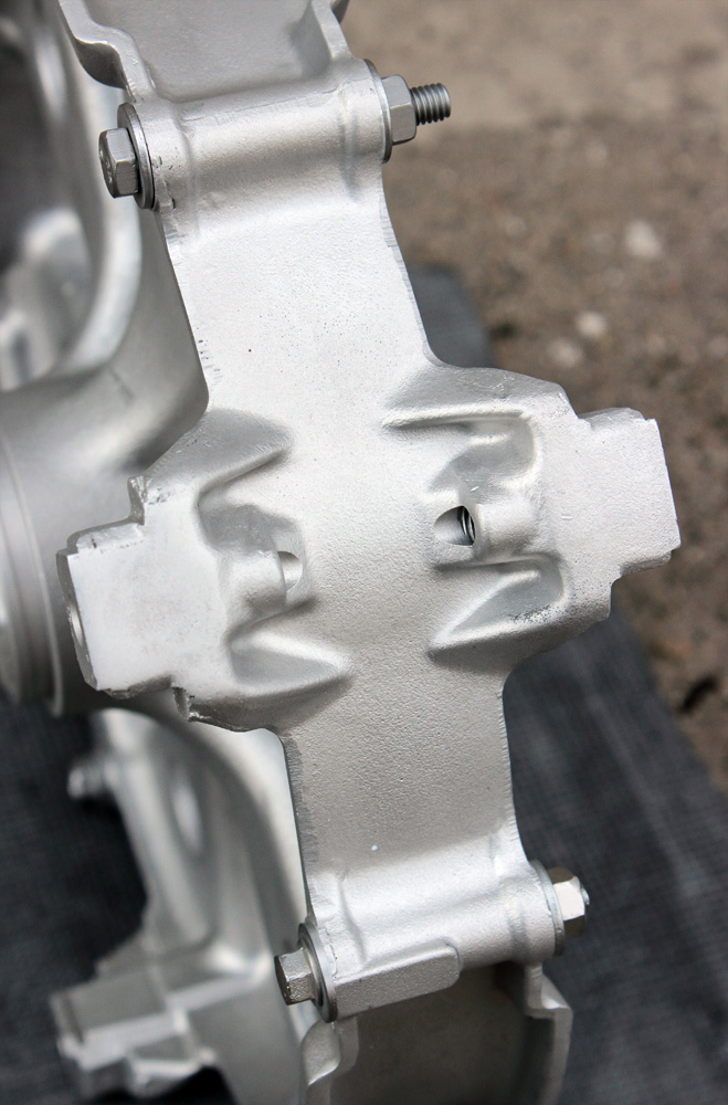 All these aluminium parts were designed to be lightweight, so they are quite thin, thus I didn’t dare to grind a lot of aluminium off them and in result surface is not flawless. Another funny thing : after polishing it is became apparent that, alloy they cast of was not quite homogeneous. After being polished to mirror it looks like some kind of Damascus steel pattern.