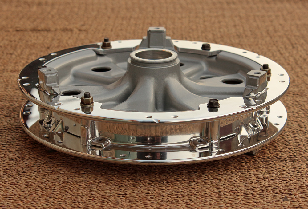 Once I finished with Honda CBX550 wheel’ hubs polishing I gave hubs to the paintshop, where all unpolished surfaces were painted with same heat resistant paint I used for Honda CB815 engine. Why bother with paint? Simply to protect that vast aluminum surfaces of hubs from oxidation and make them more easy to clean in future.