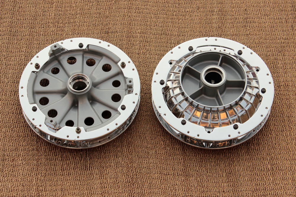 Honda CBX550 wheels’ parts are raw and never meant to be polished. Even counting that wheels are the first to contact with road dirt and different small solid particles including bugs and flies, I couldn’t lower quality of polishing works. Thus it took a lot of time to make them smooth and suitable for polishing. Here is few photos to illustrate what I mean: