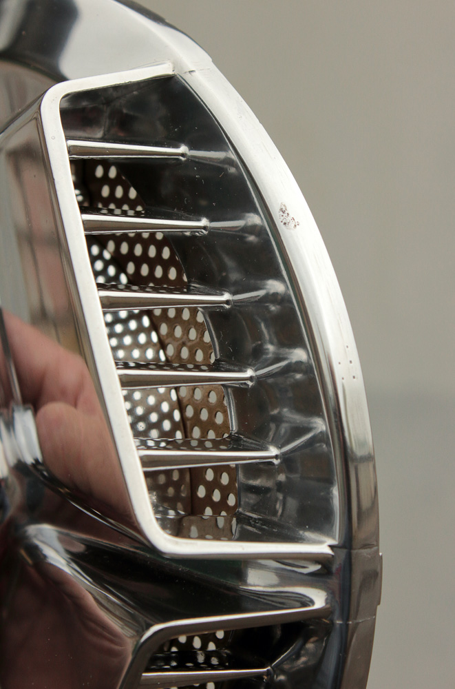 There are four grids for every brake disc patterned with round holes. They are made of steel and initially were painted in black. Sure, no painting lasts in such places unharmed for more than thirty years, thus grids needed refreshing. So to paint grids anew? Nah, it’s too trivial and we all know that devil is in details.
