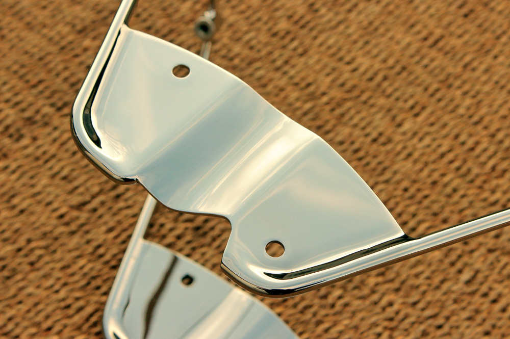 Work took a lot of man-hours as it had to be done very accurately. When the finish of grinding and sandpapering became quite visible, mudguard mount already began to look really nice. I smoothed perfectly welding seams on outer sides of mounting plates, however I wasn’t so picky with inner sides: one have to know the edge between perfection and madness…