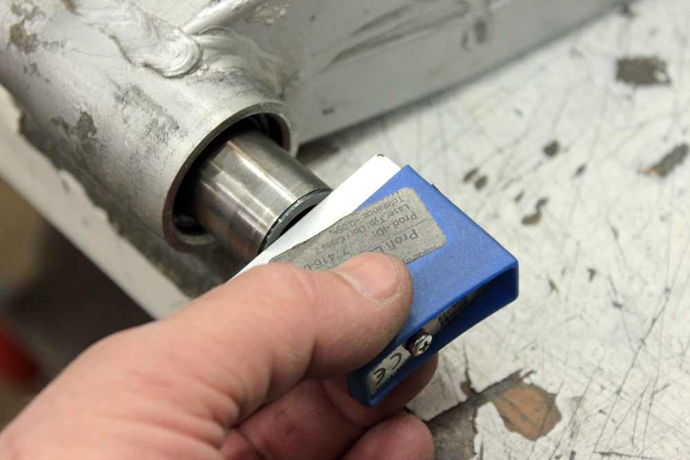 Then I measured distance from end of sleeve to sleeve housing and pulled sleeve from other side of housing on same distance. Beam of laser tool, that I put on sleeve, was aimed completely in same point of right shock mount.