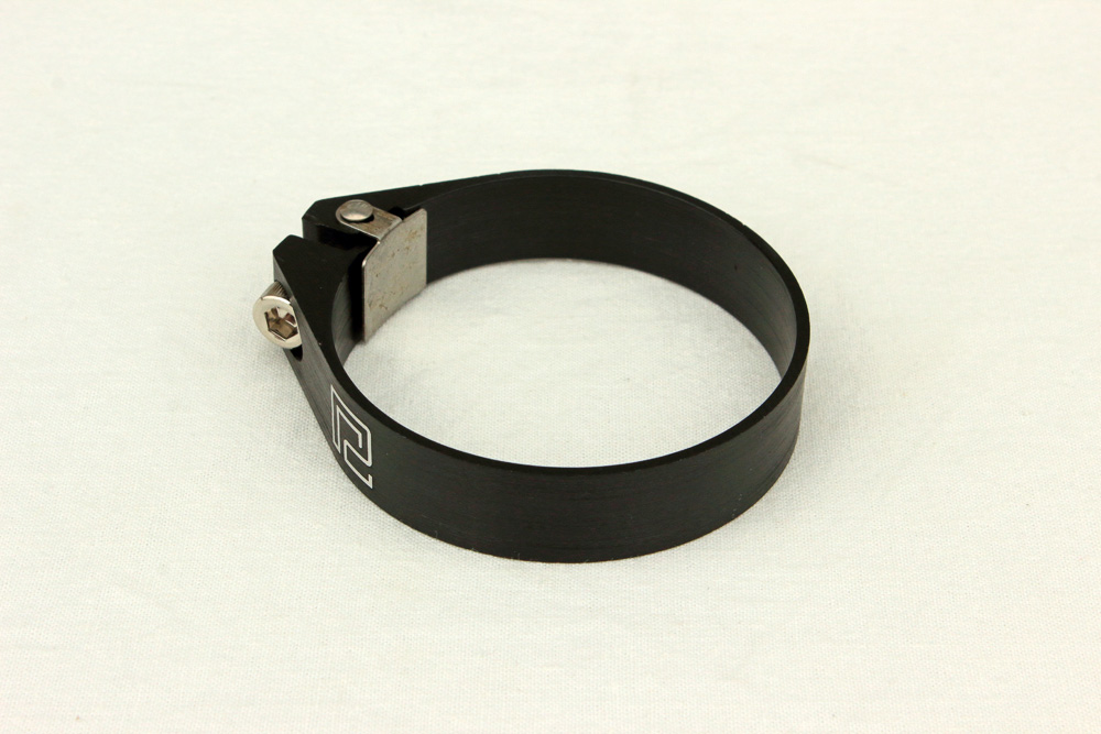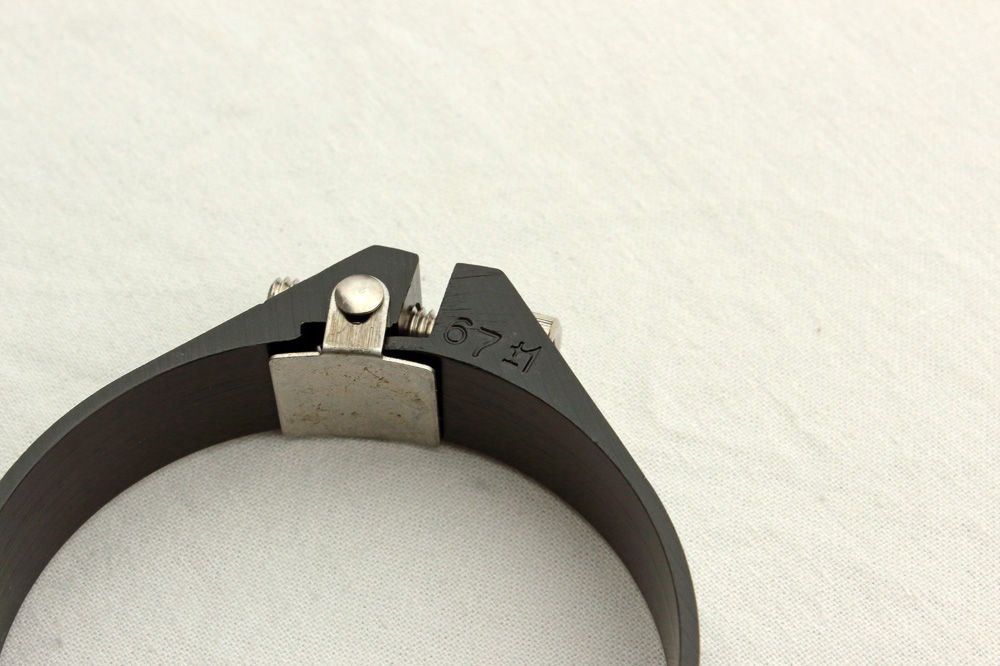 I also bought P2M aluminum clamps (anodized in black) to fix gaiters lower ends on outer fork tubes. I used clamps of this manufacturer before and found them to be very nicely made. The most suitable size among assortment of P2M clamps was 67 +/- 1mm which was approximately for 1mm larger than desirable, but I supposed this issue could be fixed.