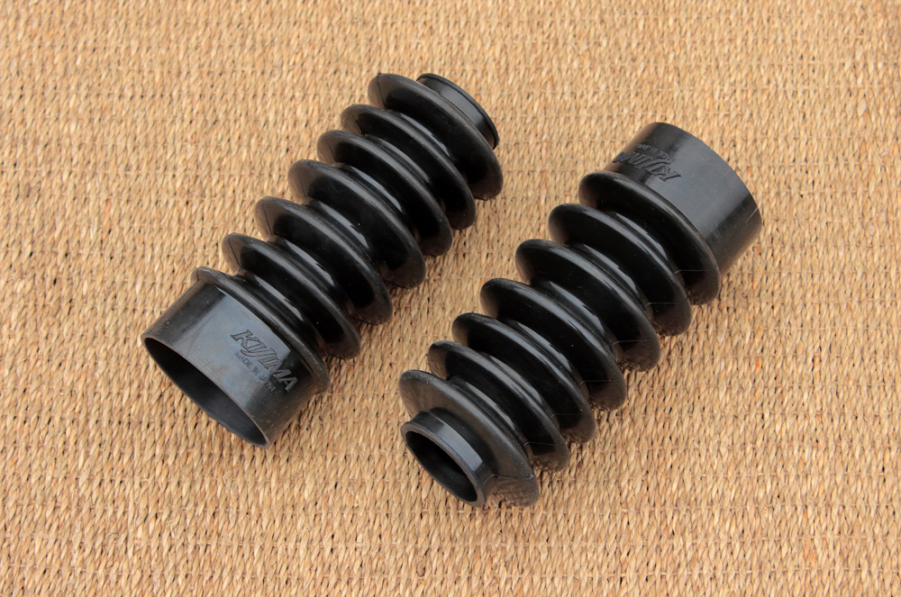 In my mind the image of cafe-racer (so to say its template) always has gaiters (boots) on front fork. So no wonder that every my cafe-racer has gaiters on front fork. And I also prefer gaiters with fewer but of larger diameter ribs. For Kawasaki KZ650 project I chose same Kijima gaiters I used for Honda CB815.
