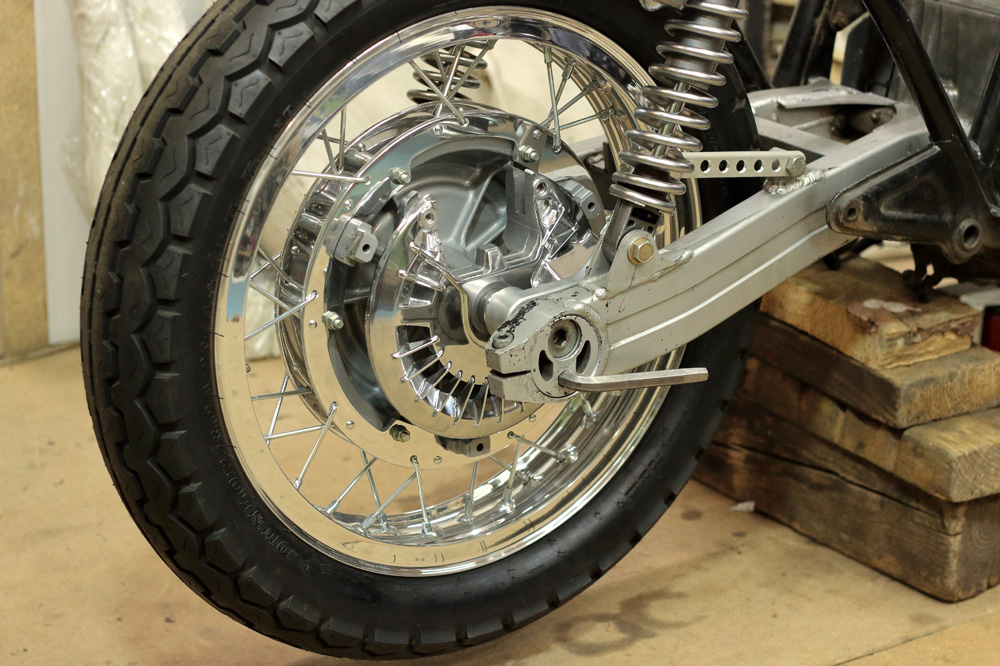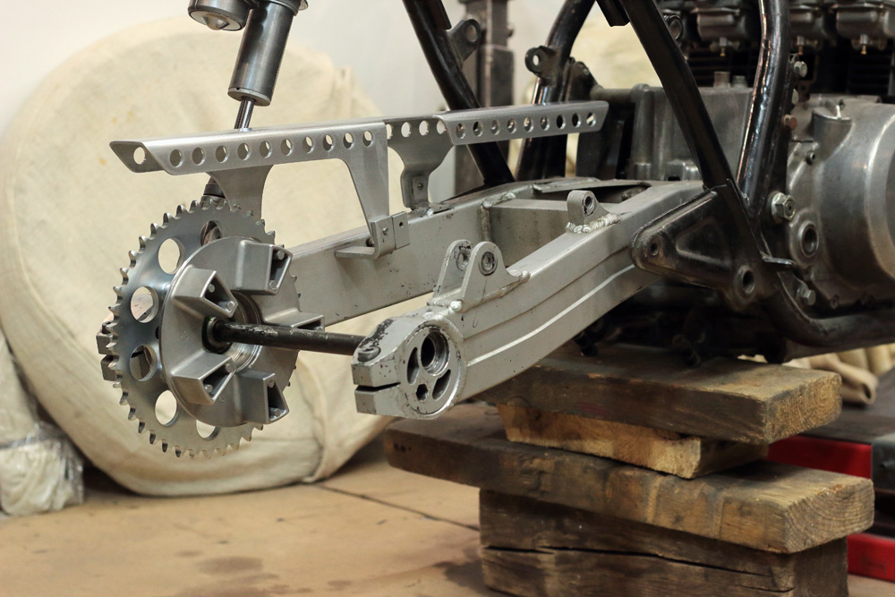 I can even put up with riding fenderless motorcycle in rain, but couldn’t afford idea of chain lubricant on my bottom, and all over my back. And whatever ultimate cafe-racer you build, chain guard is not such a loss in design, and gain in weight to make a bike without it. So chain guard is present in all my projects.