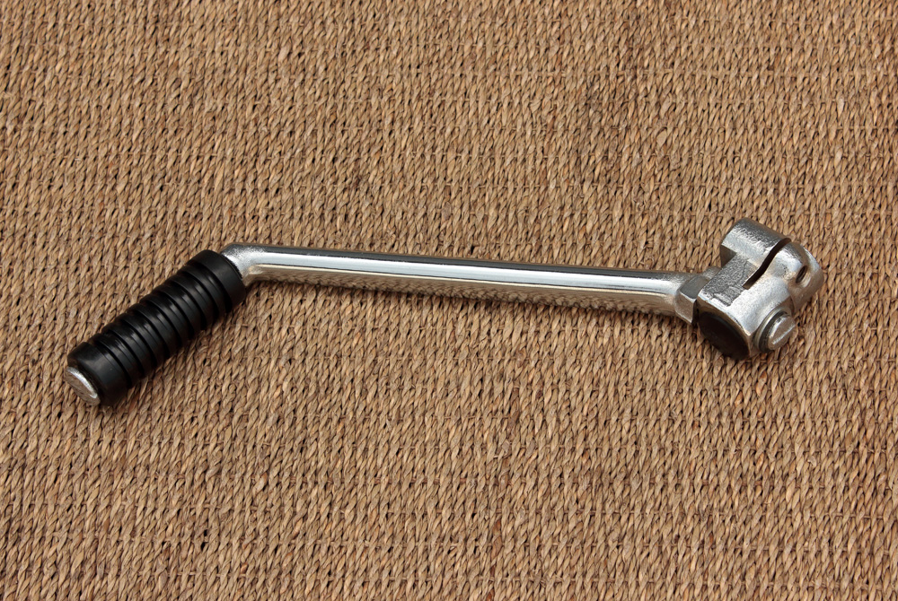 One word of caution - on my bike when being kicked the original kick starter would slightly bump against the brake pedal and hit the foot peg mount. This eventually resulted in a worn spot through the kick starter chrome and somewhat into the metal and also into the foot peg mount and brake pedal. I replaced the kick starter, brake pedal, and foot peg mount with a new old stock ones, made a slight adjustment to prevent contact with the brake pedal, and wrapped the foot peg mount with a thin bit of cushioning material where the kick starter probably would hit it again. I mention this as it is something you may want to check on your bike. Ed