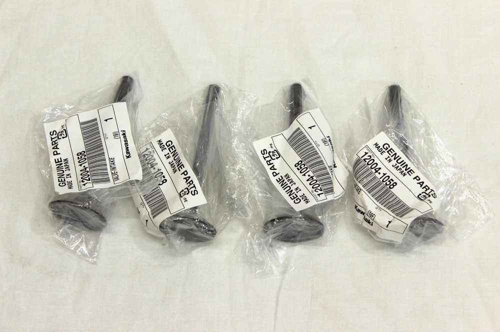 And here we go with a new shopping post. And again, all parts in it are for Kawasaki KZ650 engine, which is no wonder as engine assembling is my next big goal. As I already have a new KZ750 cylinder head, I suppose it wouldn’t be surprising that I also bought new OEM intake and exhaust valves for it. Part numbers of valves might have been superseded and sometimes it might have happened more than once. In this case I prefer to stick to the latest part number even if early part numbers are available in large and for lower price, because superseding has a reason. And the reason often is not sufficient valve resource. I have seen cylinder heads in which intake valves working surfaces had grooves while exhaust valves were completely intact or otherwise: exhaust valves had grooves while intake had none at all. I assume that in these cases less worn valves were “up to date”. So when it came to choosing between cheaper intake valves with part numbers “12004-1007” and more expensive valves with the latest part number “12004-1058” I didn’t hesitate for a long and bought valves with newer part number.