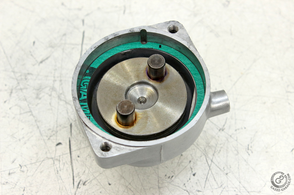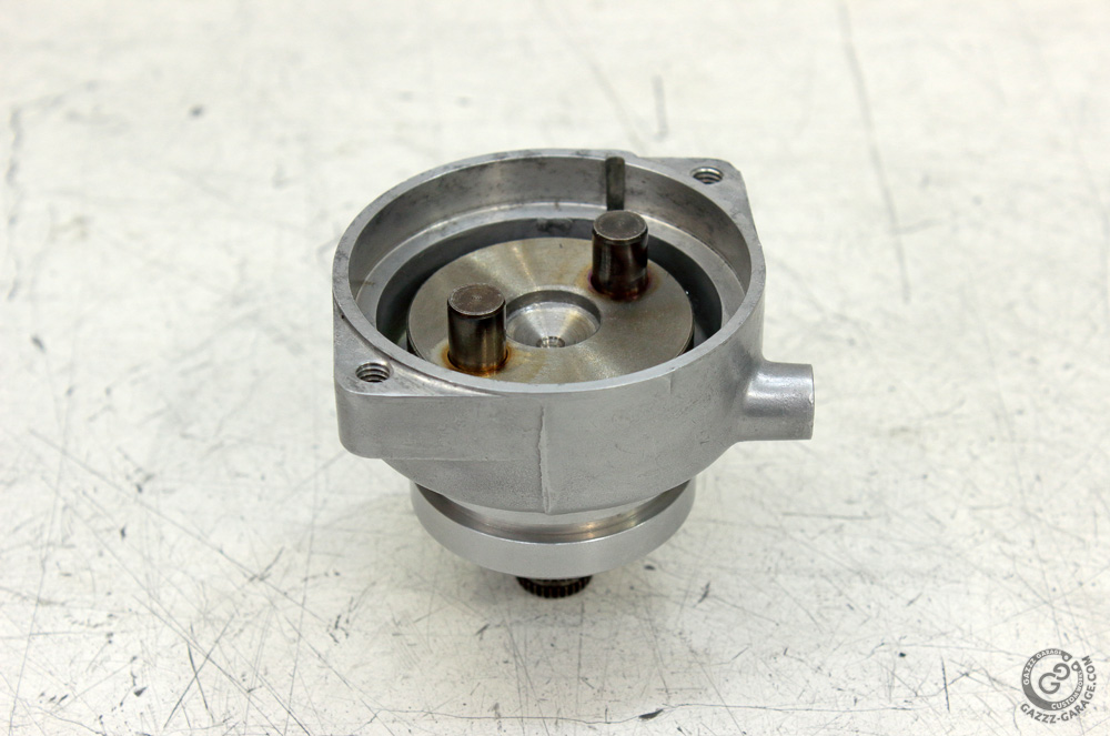Then I greased the thrust washers, put them in the original sequence (just note it when disassembling), greased the end cover bushing, installed the rotor into the yoke assembly and closed it with the end cover. Then I put another set of thrust washers in the right order on to the rotor shaft and was ready to put the end plate in place. I did operations in such order only to demonstrate significance of “wide” gasket. Take a close look on these photos: