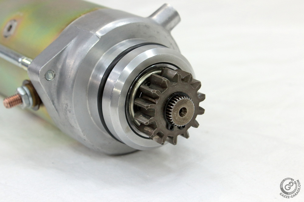 Screw two bolts and install starter motor pinion. Just don’t forget to install it with chamfered teeth facing out.