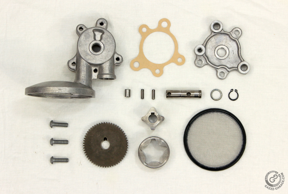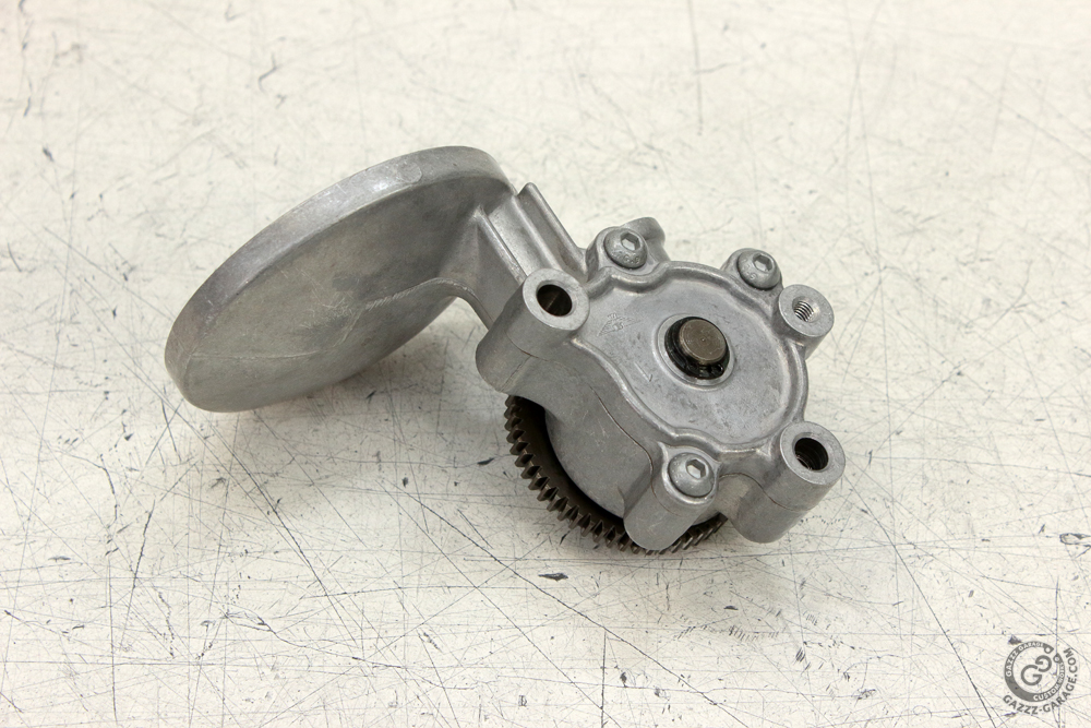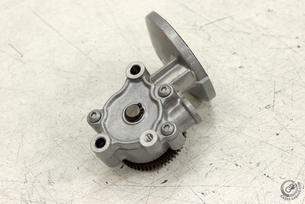 The Kawasaki KZ650 oil pump turned out to be in perfect condition, but it needed some cleaning. To clean the oil pump properly I completely dismantled it, down to removing the strainer.