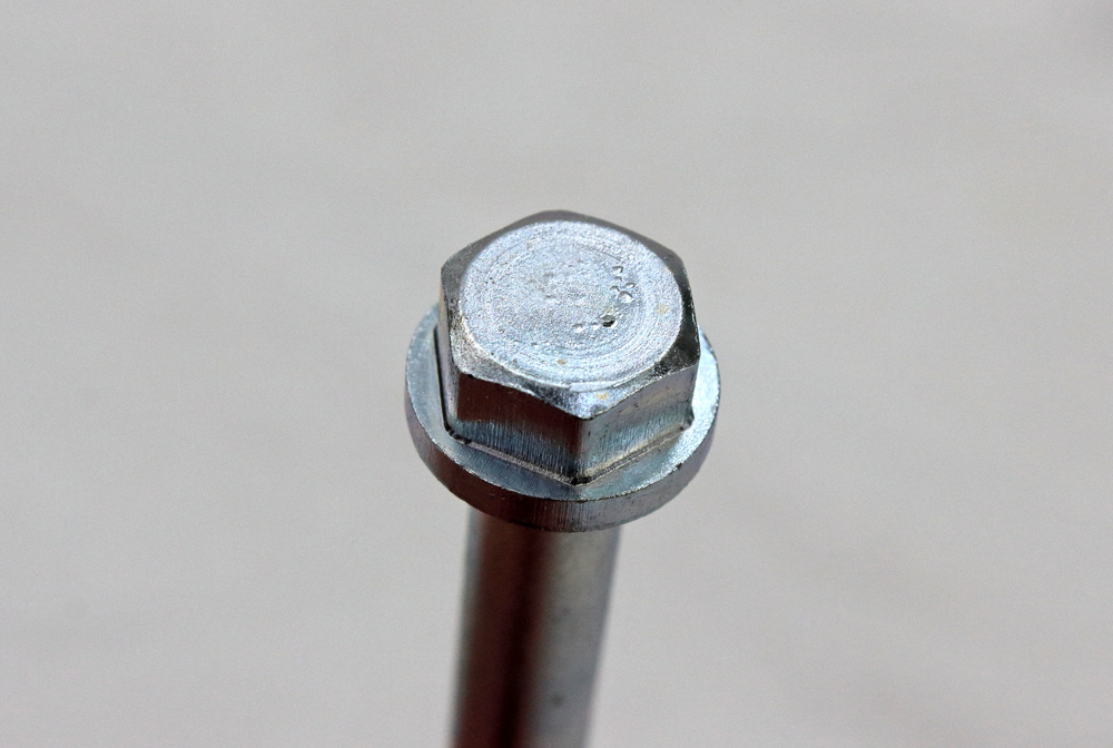 First of them was engine bolts. My initial plan was to clean, glass beads blast original bolts and re-plate with zinc. So one day I went to a company that provides zinc plating and gave them several dozens of prepared bolts: all degreased and glass beads blasted. Among them was a set of bolts for KZ650 crankcases. At first glance the result looked very nice. However, when I returned with a pack full of freshly plated hardware to my workshop and started sorting bolts, I found out that about 10% of it had plating defects. The defects looked like this: