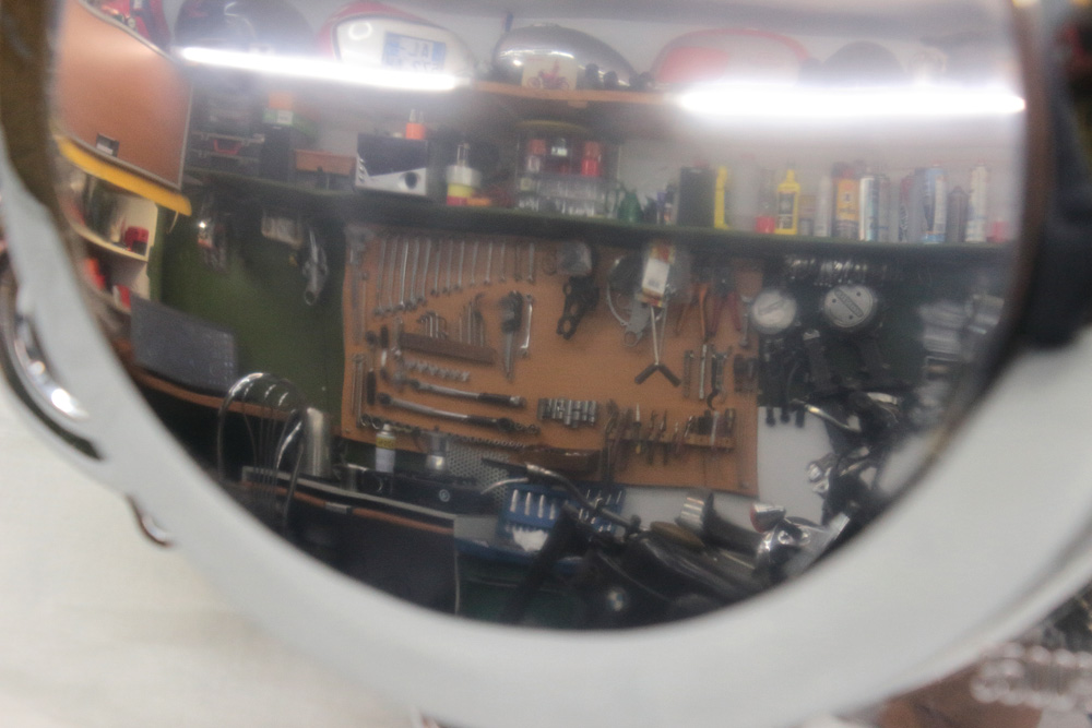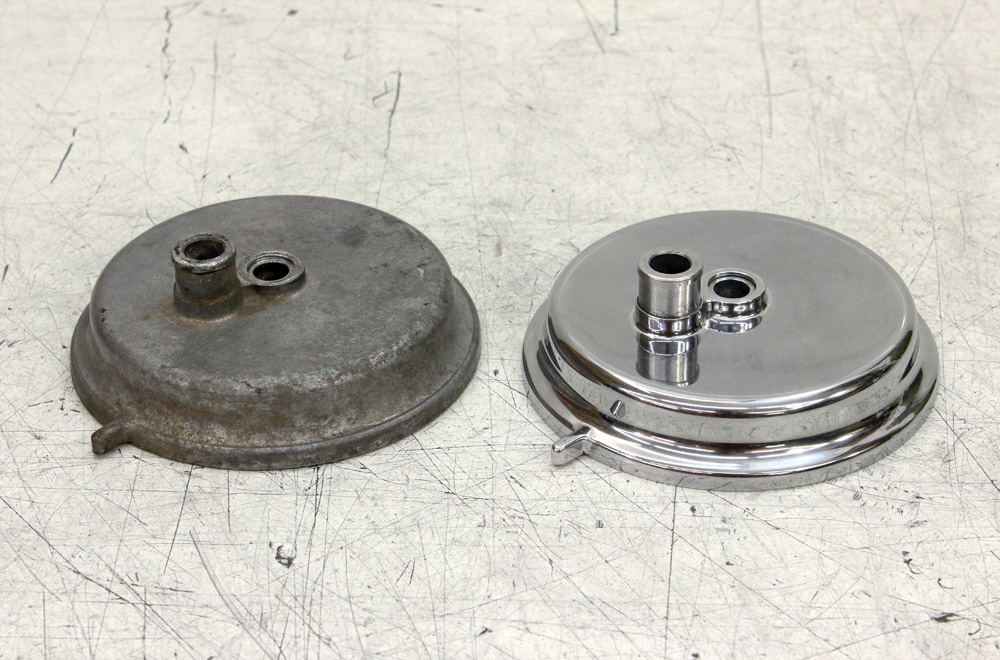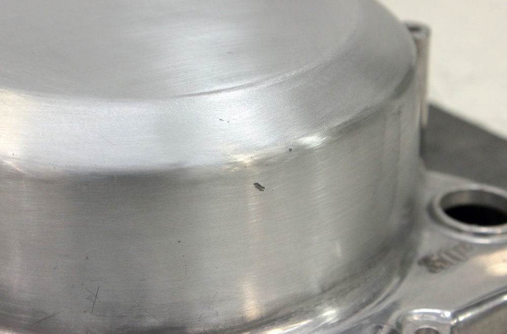 Another batch of parts I polished for our Kawasaki KZ650 project engine. It so happened that once, rummaging through ebay I came across New Old Stock clutch cover. It looked like a good deal so I bought it. Factory polishing was part of the mass production process thus it never intended to be brilliant, and sure, this clutch cover, being stored for 40 years, has got some number of scratches during its “shelf life”. Here you may see how it looked in the beginning of sandpapering. Scratches and factory non polished areas are quite visible: