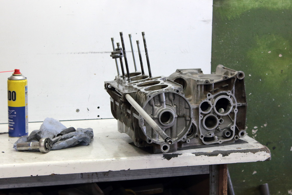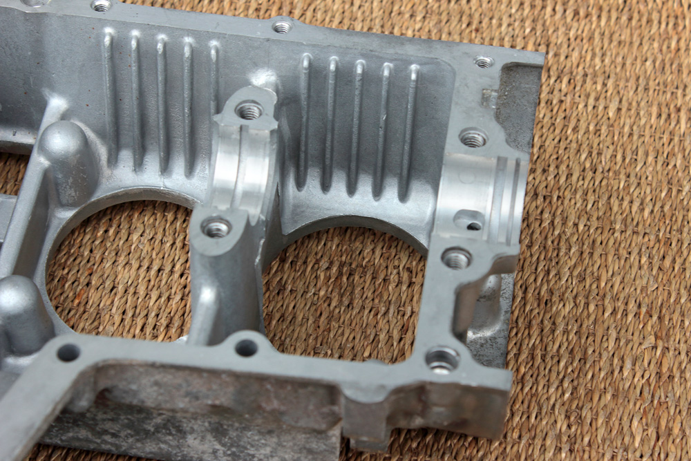 After I finished with studs I removed all steel parts from crankcase, except two nozzles of oil system. Forty years old crankcases insides were yellowish from oil depositions and I couldn’t remove that film with gasoline applied under pressure. Carburetor cleaner helped, but only in combination with rubbing, so it looked as a hell of work.