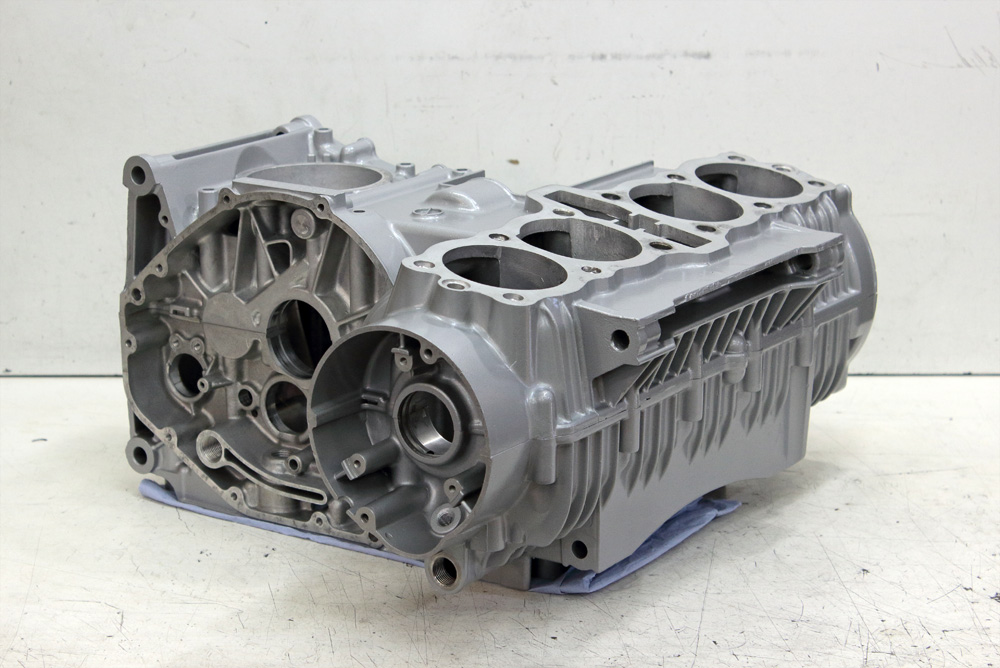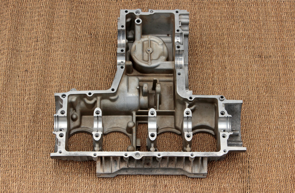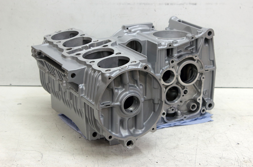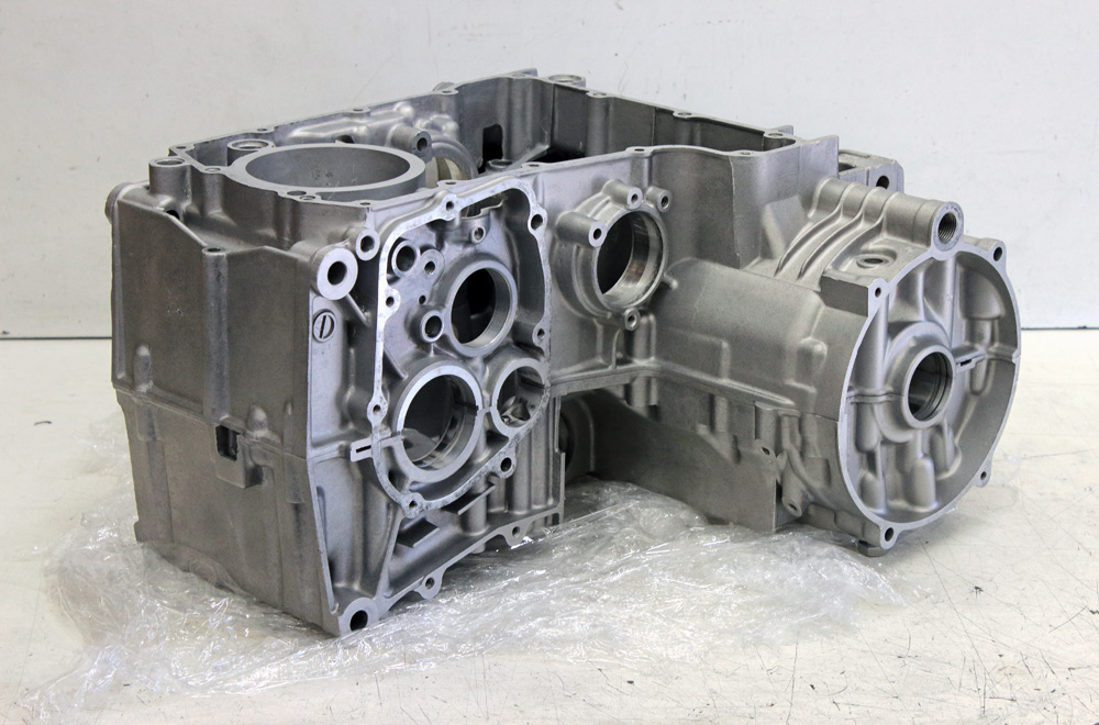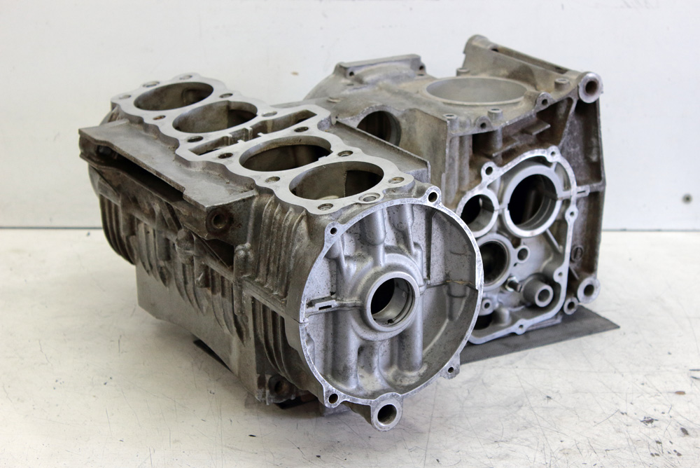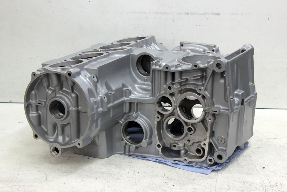 Then I loaded KZ650 cases onto my Zephyr 750 and rode to glass blasting workshop. After work was done crankcase looked much better. Now cases were as clean as possible from both inside and outside. I removed all plugs and covers. Sure, all the way I used fresh rubber gloves to keep aluminum clean and degreased.