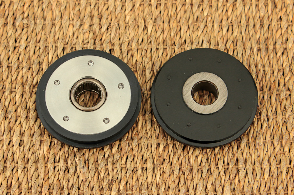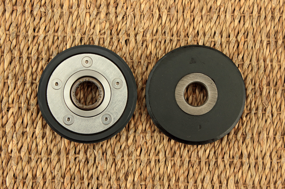 Rubber idler wheels for timing chain tension system of KZ650 now are rare, and I presume those of them that could be find on ebay and marked NewOldStock may do little good. Thus I replaced tension wheel with PMC sprocket and after some thoughts I decided to replace lower idler wheel ( part number 12055-004) with upgraded version of wheel made by Liska Racing, USA. Here it is: