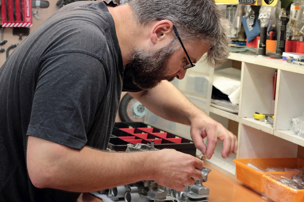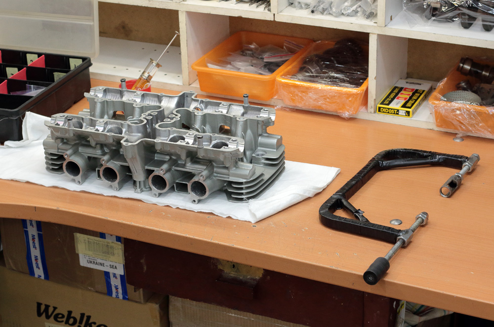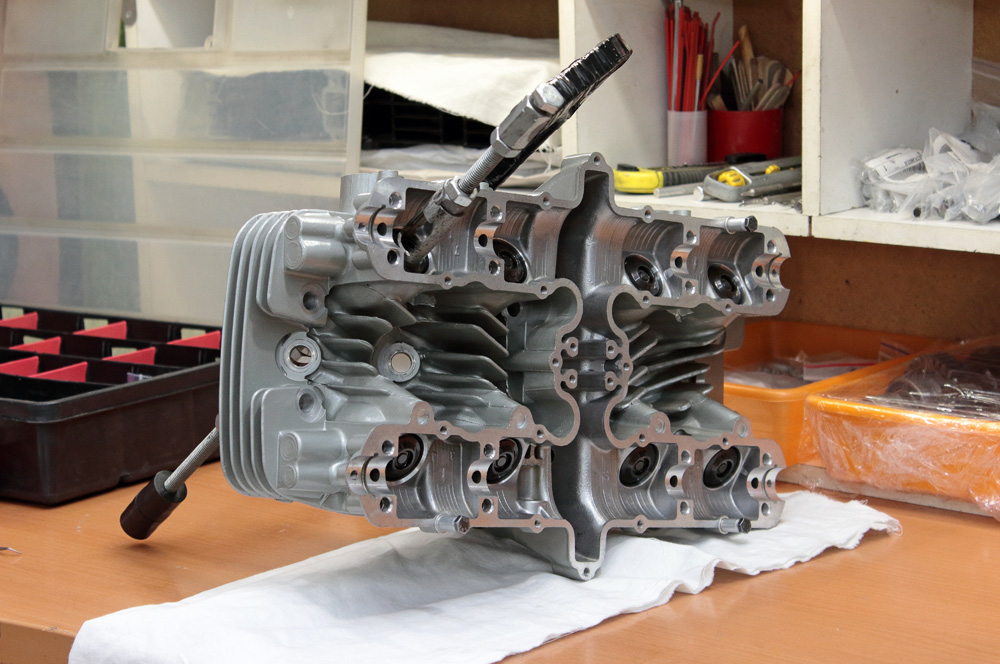 Cylinder head assembling is a simple process and with only eight valves per head it was finished in no time. It seemed that you only started: installed all lower washers and seals, took the first valve…