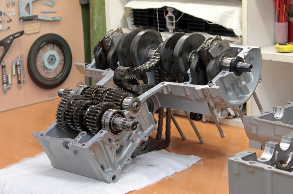And then installed the transmission in the upper half of the crankcase. Both halves of the engine case were ready to be joined…