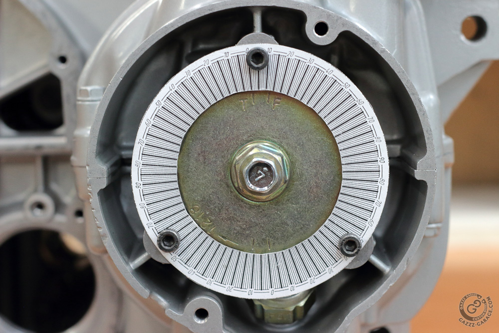 All I had to do was to check the information from the book. I made the drawing and printed a 360 degree dial that I could mount to the crankcase where the ignition contacts (picker) plate is mounted. The zero of the dial I perfectly aligned with the timing mark on crankcases.