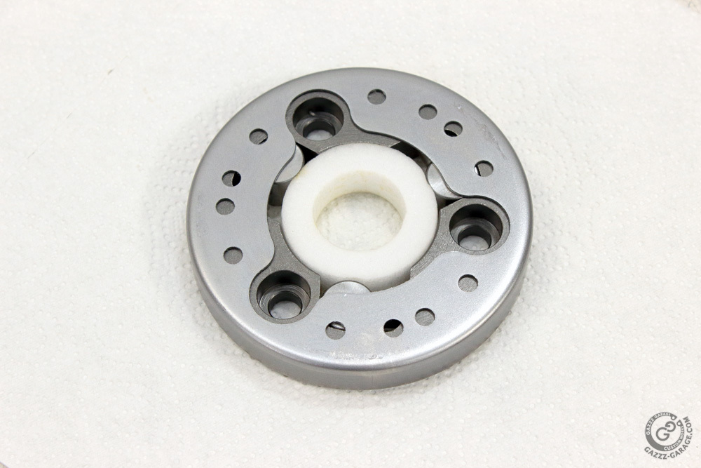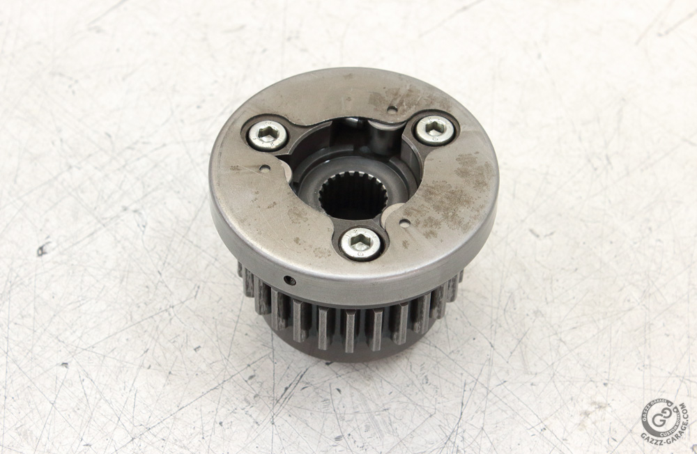 And last point. One may find advice to replace the whole starter clutch (one way assembly and starter clutch gear) when it fails. But why replacement of only rollers or starter clutch gear may not bring things back to normal? Because it is not only rollers and gear hub that get worn during starter clutch usage. The housing of the starter clutch assembly becomes worn too. Note the configuration of the grooves in the housing where rollers operate.