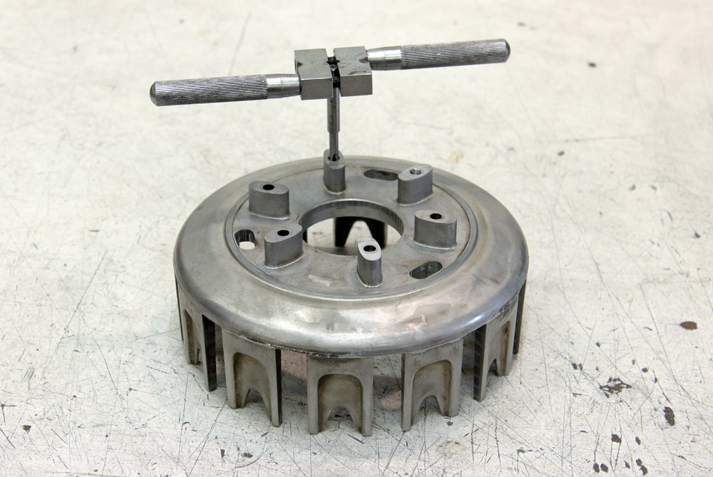 So what do we have at start? As you may see from photos below aluminium clutch basket outer is riveted by six 5mm rivets to steel gear.