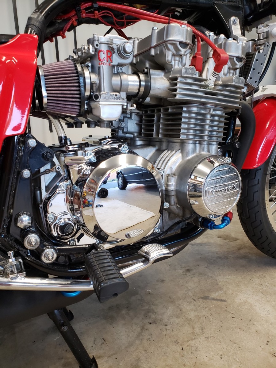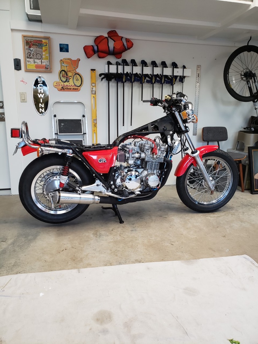 almost there on my full restore of my 650, which I have owned since new in '83 ....once over pistons & rings, GPz 750 cams, APE valve guides & springs, Barnett extra plate clutch, Earls cooler / steel braid / ANs, steering damper (adjustable), ATK fork brace, Supertrapp, Sproket Specialists front & rear, rear turn signals chopped & tucked in tight, front turn signals mounted on headlight sides, Spectre tail light, rear fender chopped 6.5 inches, chromed: side cases / crankcase breather cover / rear foot peg mounts / starter cover / oil fill cap / bars brackets, racing bars, DID Pro Street 530 chain; all new swing arm & steering head bearings, new fork seals & oil, Dyna coils & hi-per wires, all new spokes & show polish on the factory DID cast aluminum wheels, CR smoothbores, Japan after market shocks, all new igniter / rectifier / ignition / relays / fuses / battery ......know I am leaving some things out !!! (note level of lay-down ability via foot peg grind downs, it loves mountain & back roads) .....color: Ferrari Fast Red ....will post finished pics & vid in the not too distant
