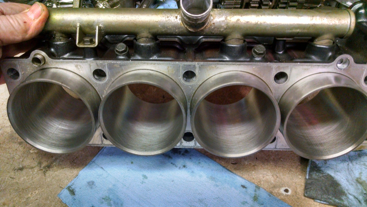 The donor engine has a broken sleeve in hole #3. The starter clutch is behind the broken sleeve.
