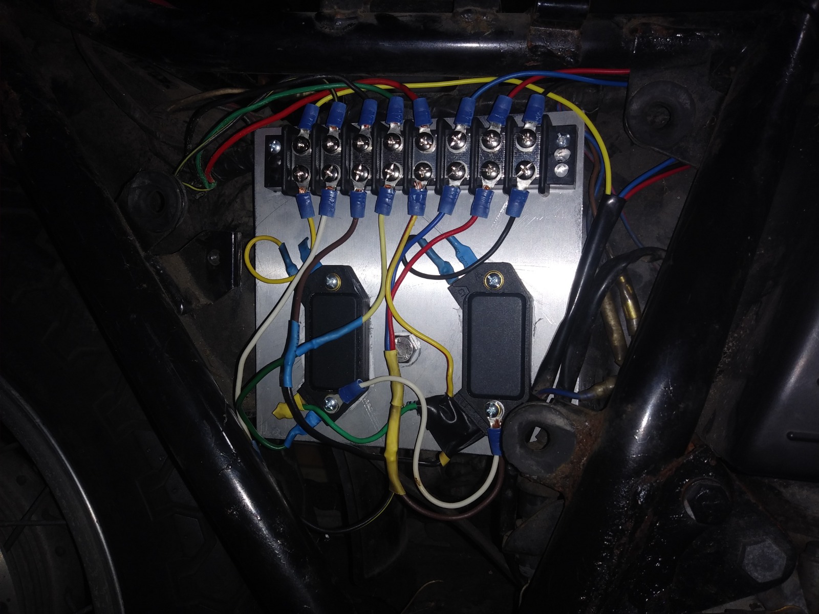 Yes. It only looks hidden in the picture. However, i put everything back together and as i turned the bike over, i got a loud backfire sound happening after i turned the ignition switch off. (Which leads me to believe spark is apparent as before this mod it did not do that)(it smokes from the exaust as i turn it over which is also new)It did this 3 or 4 times and then the main fuse popped. Complete loss of power to everything. I have been trying to read into why this would happen, to no avail. Im assuming there is now better voltage running through the electronics? I will be getting a pack of fuses so i can verify today. Should i run a 15a fuse in place of the 10a to allow for the slightly better voltage? Or just assume the older fuses may have been on the brink for some time and replacing with original amperage. Mind you the wires and inside the fuse box looks brand new. Zero evidence of age or wear.