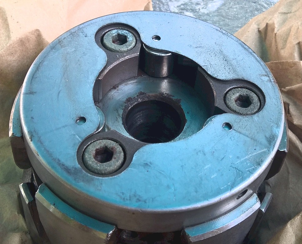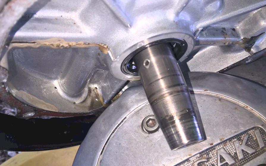 Also, there have been questions in the past about whether or not the alternator housing on a Kz400 should have oil in it. Well this one did because the flywheel was as free as a bird. But I believe it should not have oil. Any oil is the result of leakage past either of two seals. There is a seal between the crank and the starter clutch and other between the starter clutch and the crankcase. The crank has an oil hole used to lubricate the starter clutch bearing on the crank.