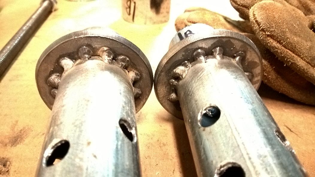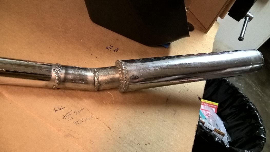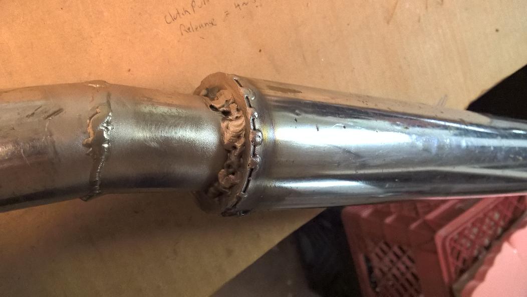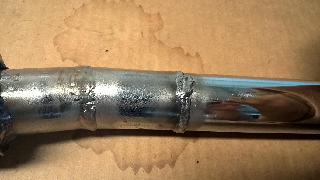 My buddy did some the of the welding on the connector pipes. He has a tig setup while I was using my flux-core. So there are some differences in the welds. Sometimes the tig was better and sometimes the mig was better.