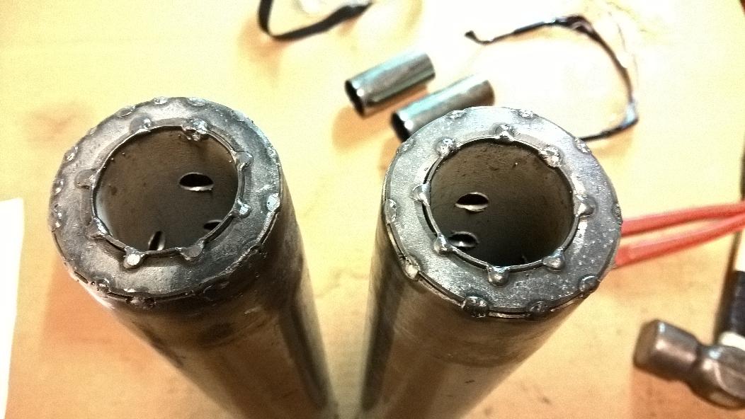 These washers were cut down and filed to be the endcaps of the mufflers.