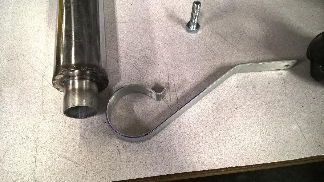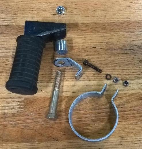 The hangers are scraps from the dumpster again. They will be hanging off the passenger pegs. They are little overkill, so I'm not sure how permanent they are. We just need something to work for now.