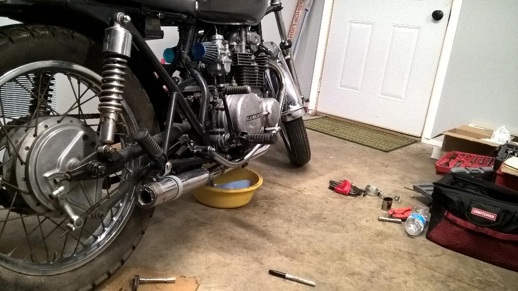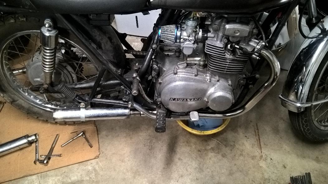 I'm planning on making a similar exhaust for my scrambled Z400, but going for a high level stainless steel system with both pipes on the same side.